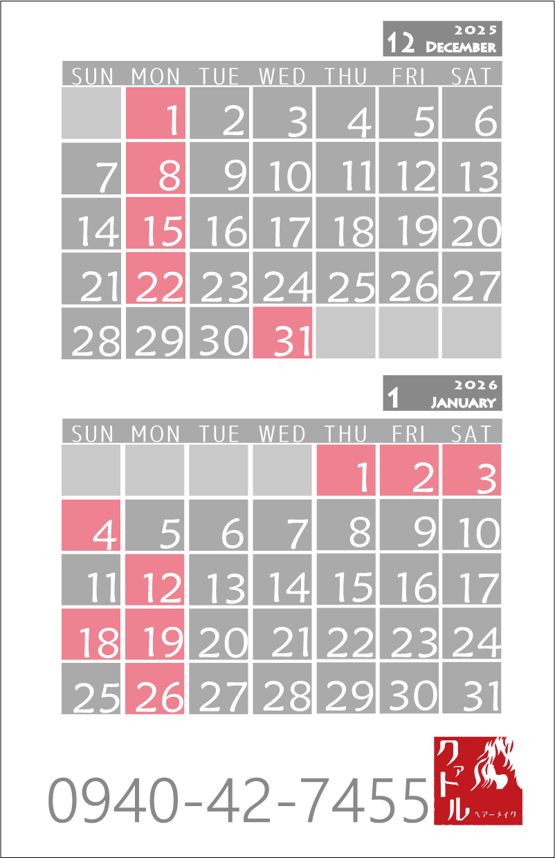 2022年末年始、休業日のお知らせ。
